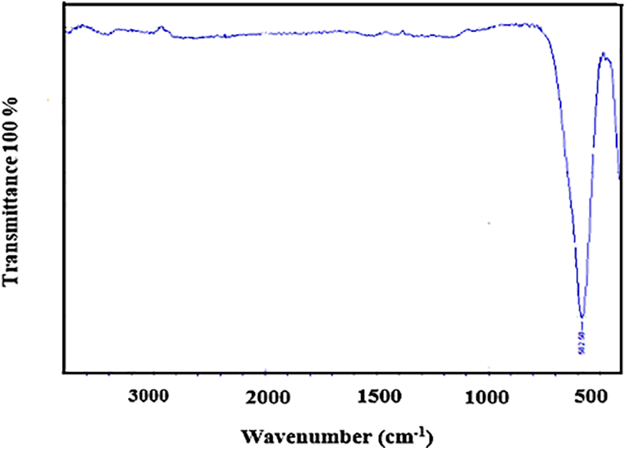Fig. 1. FT-IR spectra of CuNiFe2O4.